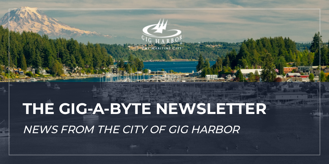 The City of Gig Harbor, Washington publishes a weekly newsletter called "Gig-a-Byte". The newsletter provides information about the city government and regional issues. This page provides a link to the most recent Gig-a-Byte newsletter. From the linked page, you can also select previous issues of the newsletter.